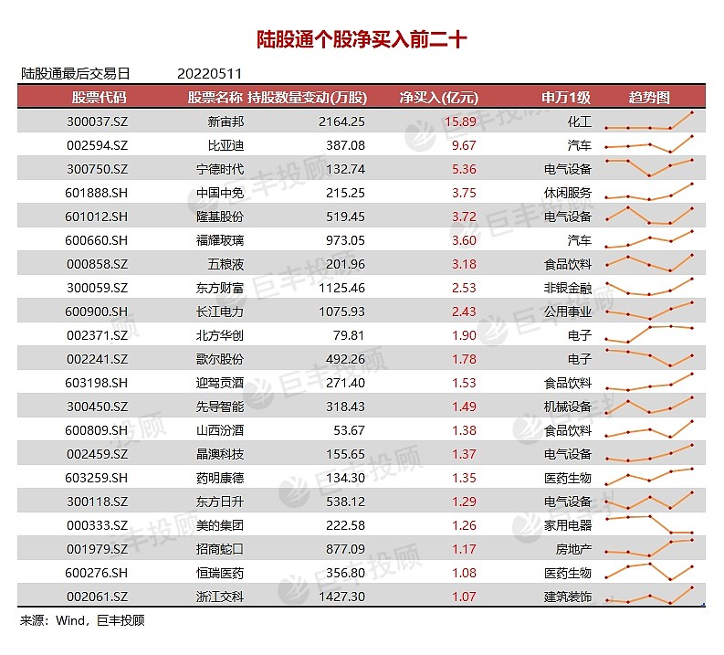 北向资金净买入最多的行业为电力设备,净买入14.15亿,净卖出最多的行业为有色金属,净卖出8.87亿。净买入前五的行业分别为电力设备、汽车、电子、公用事业、食品饮料、医药生物。电力设备板块净买入居前的个股有宁德时代、隆基股份、晶澳科技、东方日升等。北向资金对公用事业、化工板块连续多个交易日净买入,短线可重点跟踪。对轻工制造、钢铁、有色金属板块连续多个交易日净卖出,短线保持谨慎。