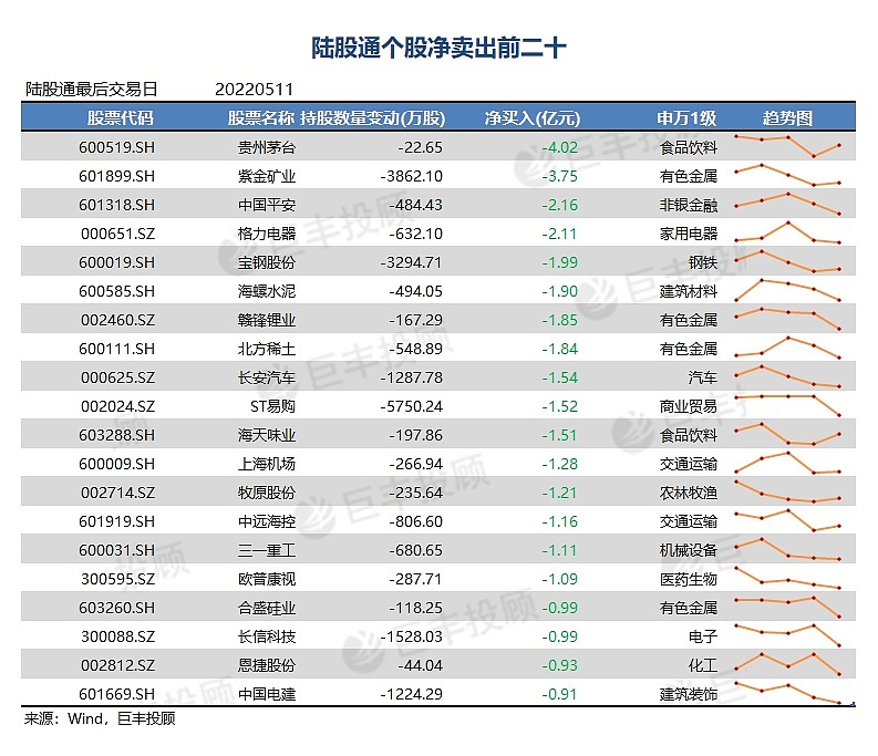 在净卖出前二十中,北向资金对紫金矿业、宝钢股份、北方稀土、海康威视、海天味业连续多个交易日净卖出,短线保持谨慎。