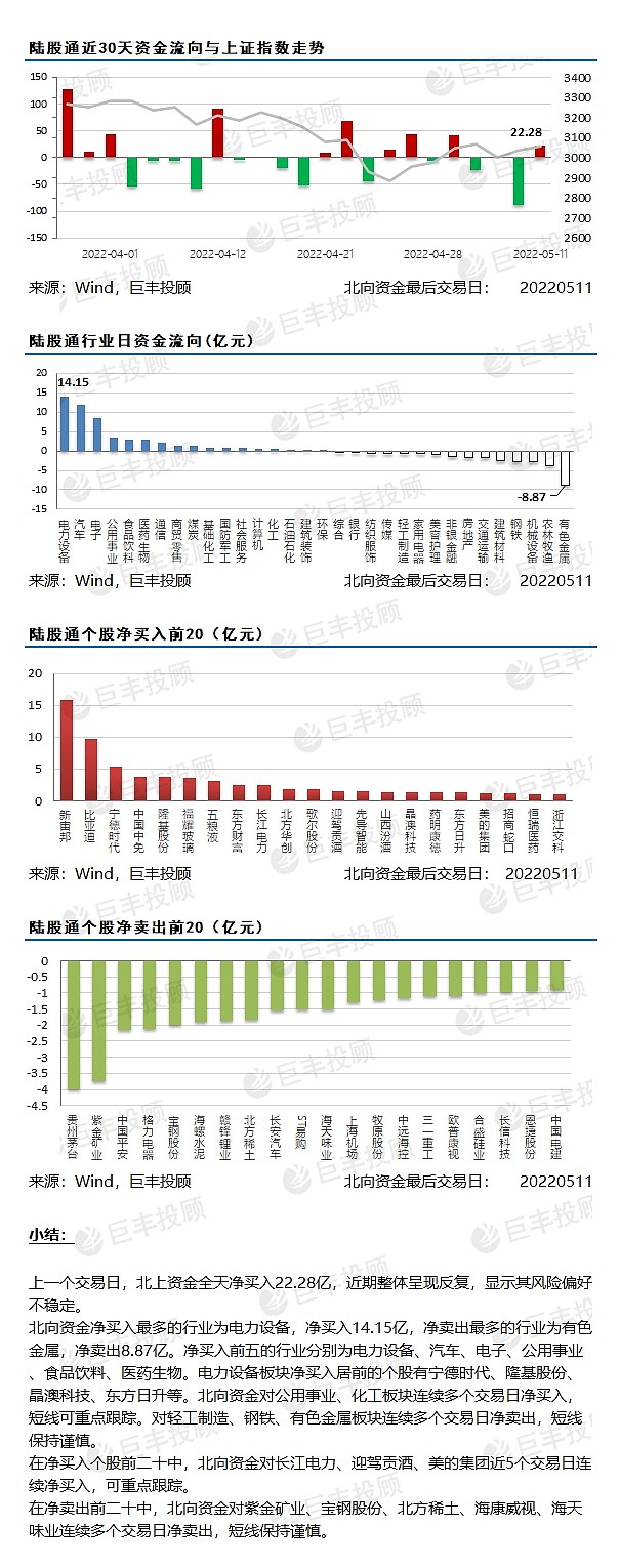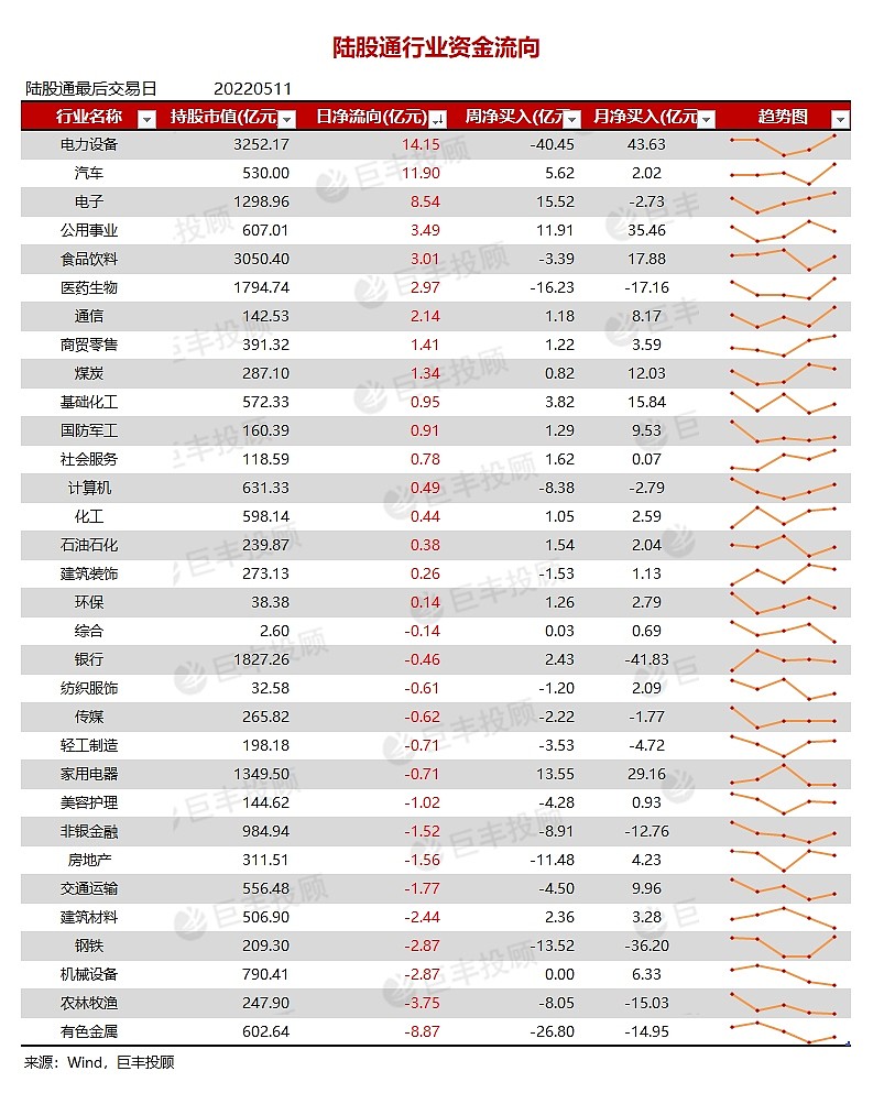 北向资金:净买入电力设备净卖出有色金属