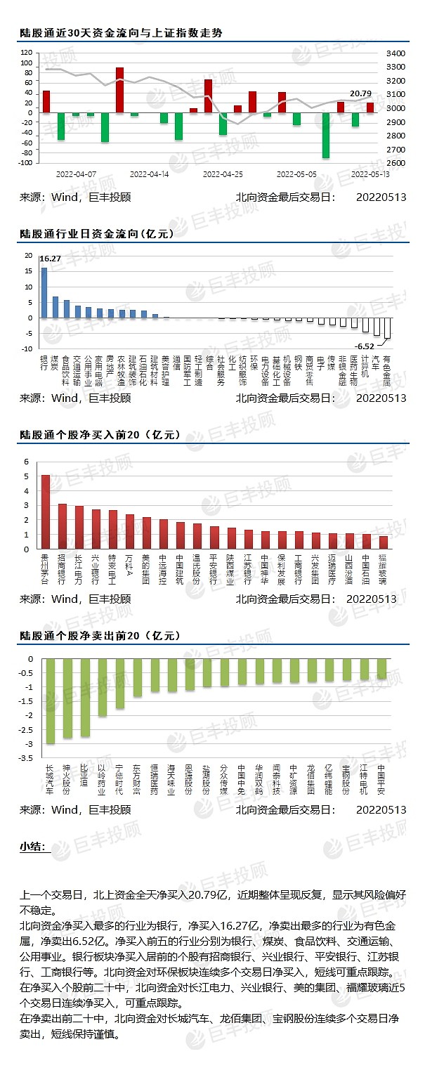 上一个交易日,北上资金全天净买入20.79亿,近期整体呈现反复,显示其风险偏好不稳定。