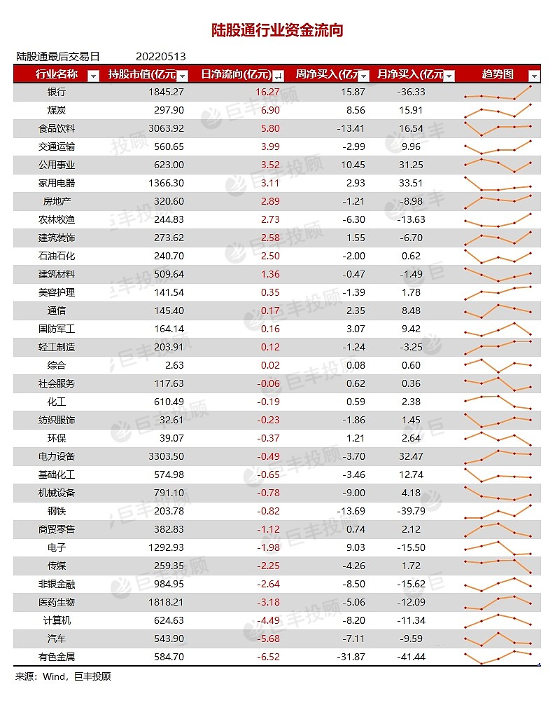 北向资金:买入银行净卖出有色金属