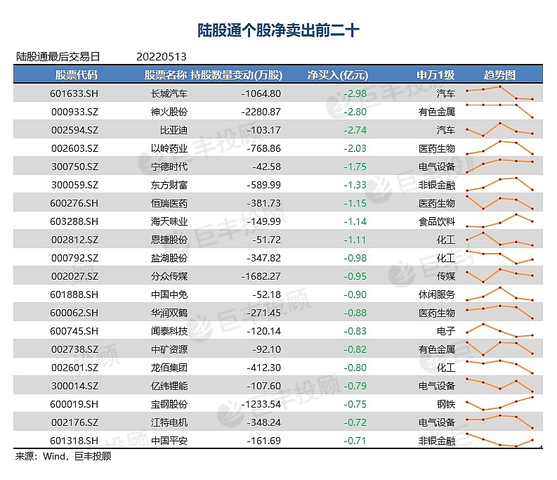 在净卖出前二十中,北向资金对长城汽车、龙佰集团、宝钢股份连续多个交易日净卖出,短线保持谨慎。