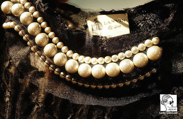 Chanel用金属链镶嵌在外套下摆为了使外套版型垂坠自然。但Lanvin这条连衣裙更甚的是领口的珍珠与下摆的珍珠相互呼应营造出强烈的层次感,细看你会发现镶嵌的珍珠上下层颜色都有细微的不同。