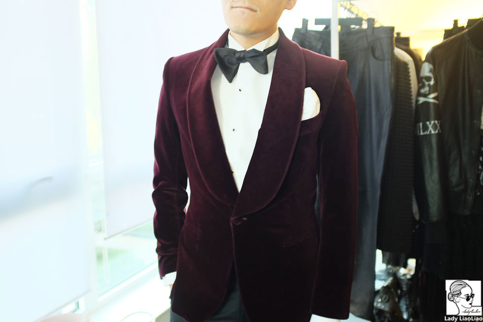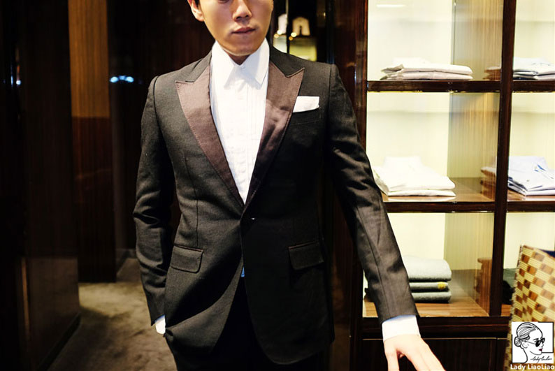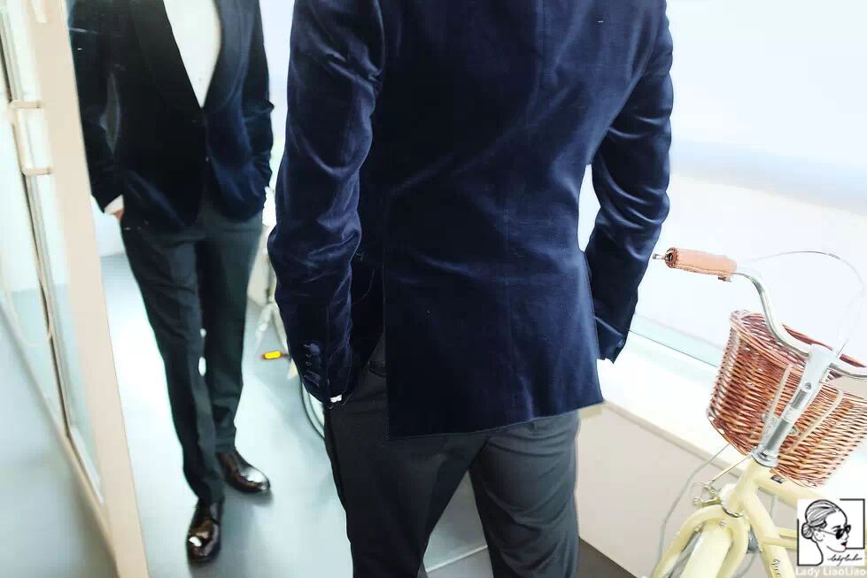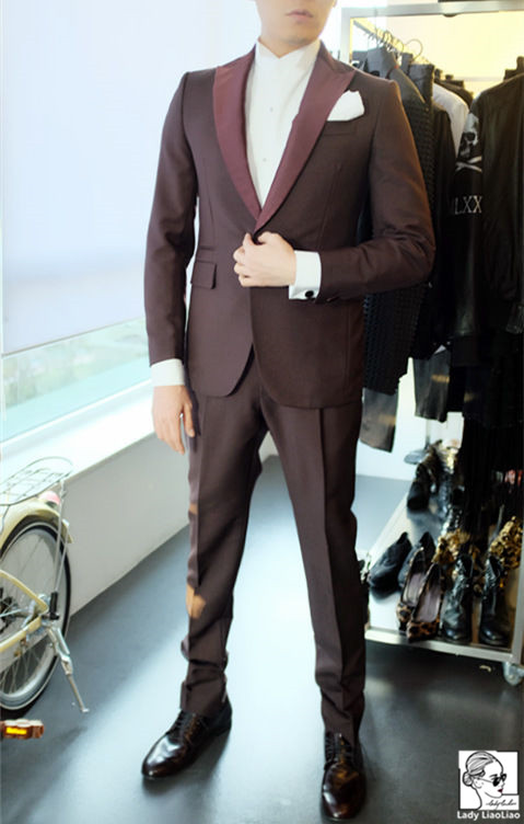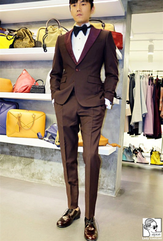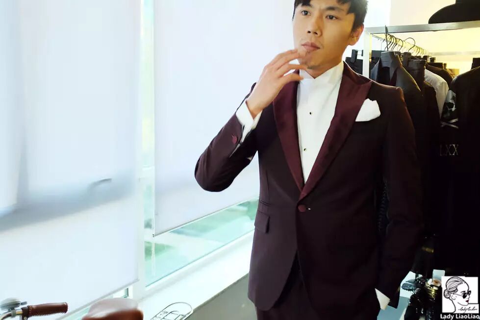 Berluti被LVMH视作珍宝,是它男装中的明珠,用家族世代不断钻研的极高工艺成就了这件“绅士角度”的暗红色礼服。我迫不及待的再次让秦昊挪步试衣,虽经周折,但上身后果然非常精致有型。
