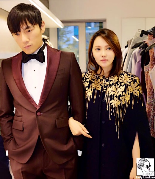 里外已经选了5套但我仍不满意。因为我想要的效果是眼前一亮的同时却还要低调奢华的表现出他的艺术品位,这几近矛盾的要求顿时压力倍增,就更别提和品牌间的反复交流迂回。于是我开始做减法,要跳脱必须有色,所以黑色被我断然的排除在外,丝绒又不够低调奢华,此时此刻脑海中突然出现了在LookBook上看到了一款今年最新经典款的西装似乎满足这个要求,于是在所剩无几的时间里赶快和品牌沟通让他们准备这件礼服,等我见到实物的时候,心中被小小的震撼到了。