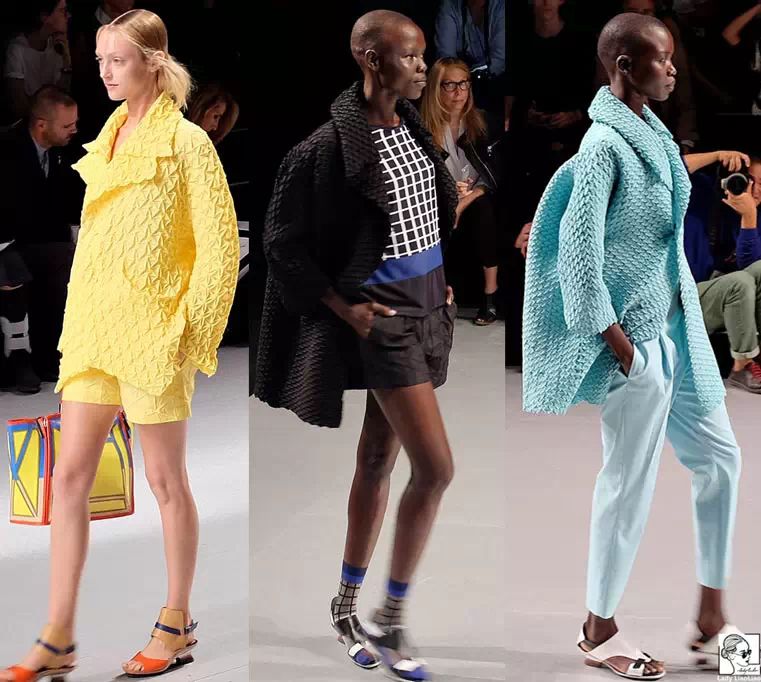 Lady聊聊记得在2012年的秋冬时装秀上,Prada将几何图形拼接玩儿到了极致,运用了大量的方块、长条和菱形的图案。但要从艺术层面来讲,都不及三宅一生这样用心。