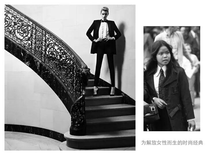 ▲1966年,Yves Saint Laurent女性“吸烟装”的诞生,成为了那个时代的时尚革命标杆,它打破了男女界限,为全世界女性揭起了狂热的中性风潮,也为香港女性追捧中性美打下基础。