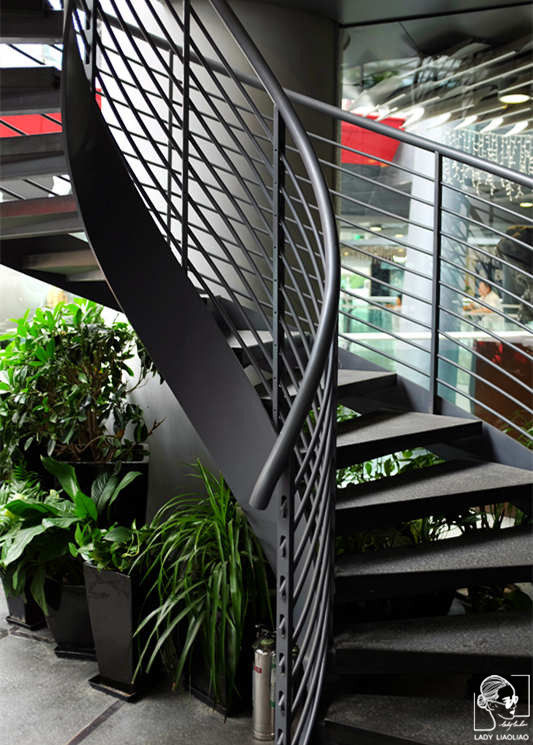 ▲阳台直通Alfred Dunhill旗舰店二楼的售卖区,螺旋形楼梯设计简约。