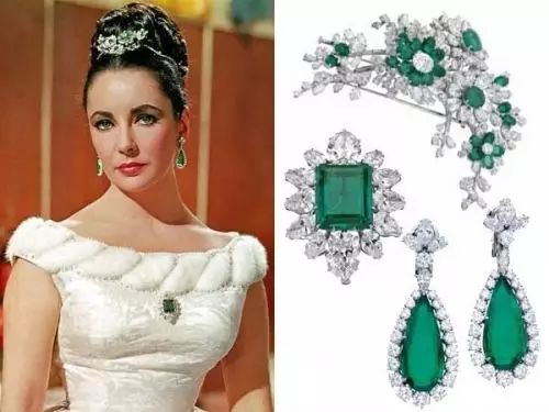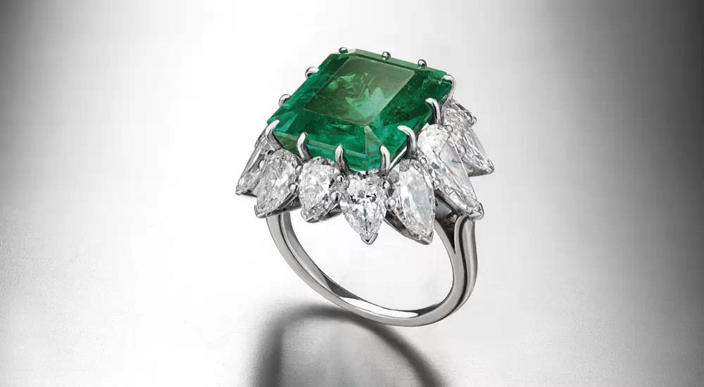 还有伯顿1962年送给泰勒的第一份礼物,重达7.4克拉的祖母绿钻石戒指。