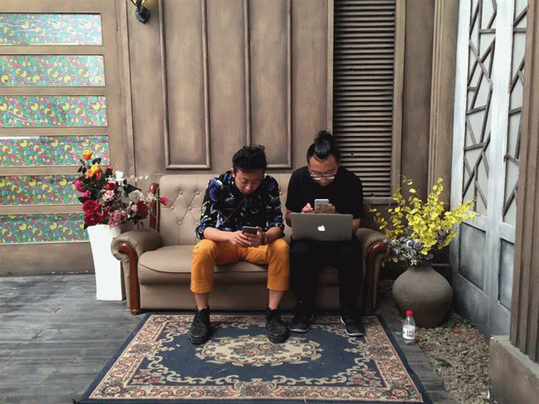 另一边,摄影团队的老师们正在搭建拍摄场景。