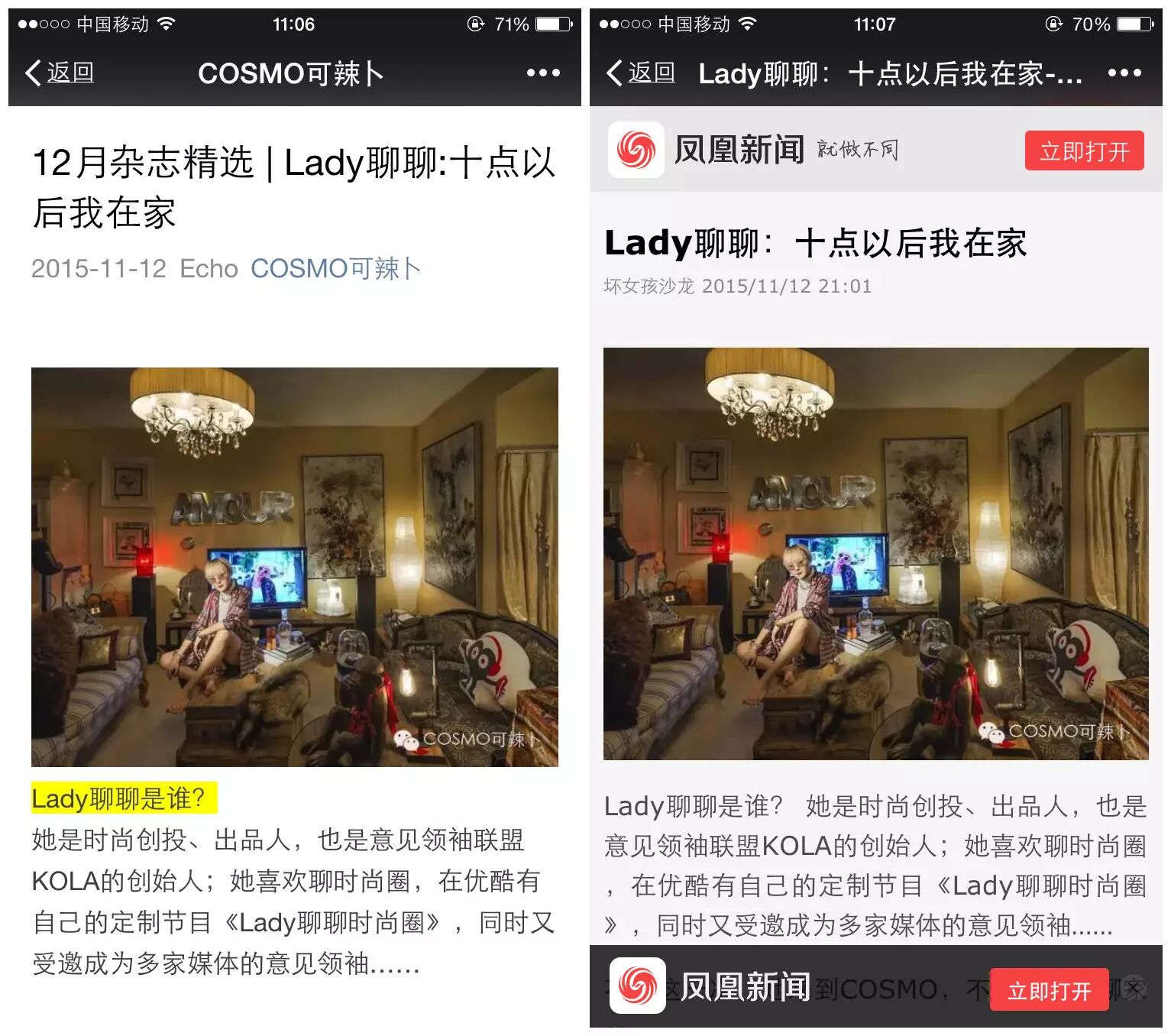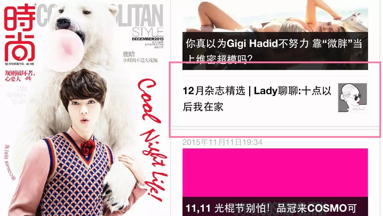 《时尚COSMO》杂志的订阅号中也推荐了杂志中的精选内容」