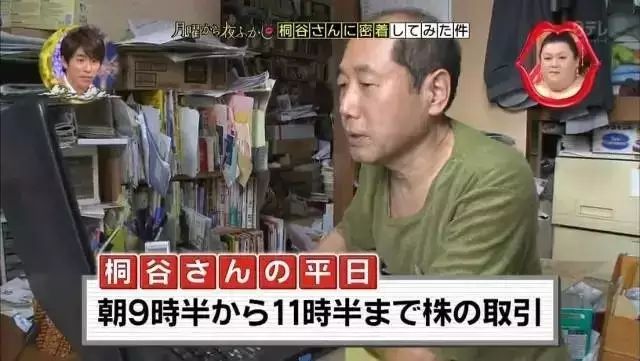 他从35岁开始炒股,退休前是一名日本将棋专业棋手,退休后在家专职炒股。最惨的时候,他曾经一天内亏掉2000万日元(约合人民币102万元)。因为交不出房租,连吃饭都成问题。他开始钻研如何最高效地利用优惠券过日子。在交易日,桐谷先生白天操盘,只在非交易时间出门活动。他奉行的是“坚决不掏现金主义”,日常生活完全靠“股东优待券”解决。