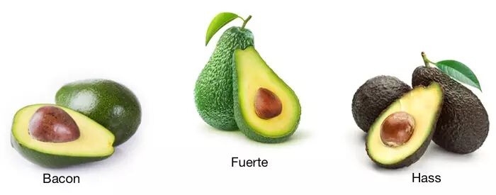 下面这几款是最常见的墨西哥牛油果的种类,一般在国内我们吃到的是最右边的这种类型Hass,在美国大家也都比较青睐Hass。