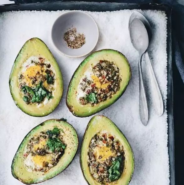 早餐想快手又美味,不妨试试将牛油果一切为二,打入鸡蛋,撒上芝士碎和培根碎。素食者可用蘑菇碎和洋葱碎代替,放入微波炉叮2分钟,撒上盐和胡椒。是不是很简单!