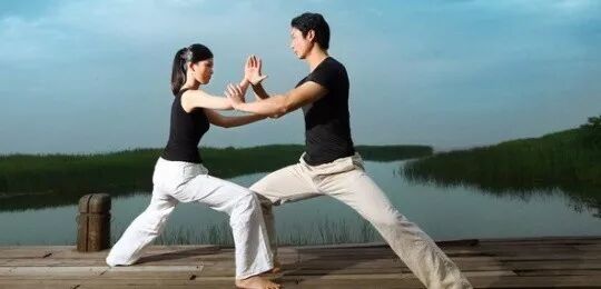 再比如,对方封住我右手并向我发劲,而我虽然被封住右手,但我腰胯随即向左转换,左重则左虚、右重则右沓,不进则罢,若进必然使对方落空,因为胯的移动已使我的重心变化,而我重心一变,则可相机得势使对方失去重心而倾斜跌出,这是“松胯活裆”的结果。久而久之,心意合一,由内达外,自然浑然一体。
