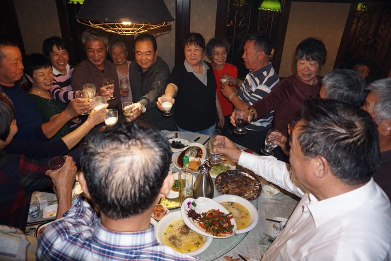 欣逢盛世,万物生机,上海南汇中学迎来了九十周年华诞,2017年10月15日上午,连绵秋雨丝毫不能阻挡校友们回母校参加庆典的热情,9点30分开始的庆典,8点钟30分校门口已经熙熙攘攘,冒雨从天南地北赶来的历届师生纷至沓来,呈现出一派热闹、欢腾的景象。 各级领导、历届校友师生、乡贤以及社会各界人士等四海宾朋欢聚一堂同庆南汇中学建校90周年,一起回首南汇中学九十年来的风雨沧桑,畅谈南汇中学未来的发展! 我们1968届初中1班34位老同学参加了母校九十周年庆典,会后我们班老同学一起共进午餐。席间,老同学们倾情交谈,共诉衷肠,传递真诚。 大家一致认为,热情的参与是同学相聚的基础,也是同学之间延续友情的机会。要珍惜这来之不易的彼此共处的时光。要保重身体,安渡晚年,看淡名与利,看轻财与贵,知足者常乐,要多参与老同学聚会。同学们频频举杯,祝愿大家健健康康,快快乐乐,心如顽童,笑口常开,快乐每一天!