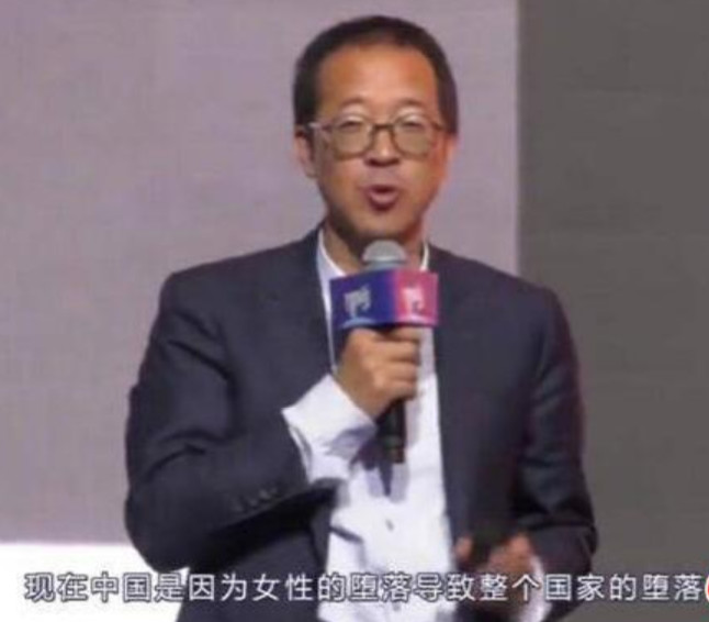 因为他认为,中国的堕落要怪中国女人。由于女人都要男人没良心地赚钱,导致中国男人很“听女人话”的变得有钱而没良心,然后中国就堕落了!