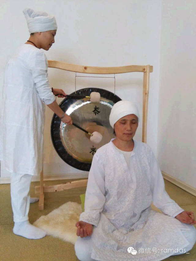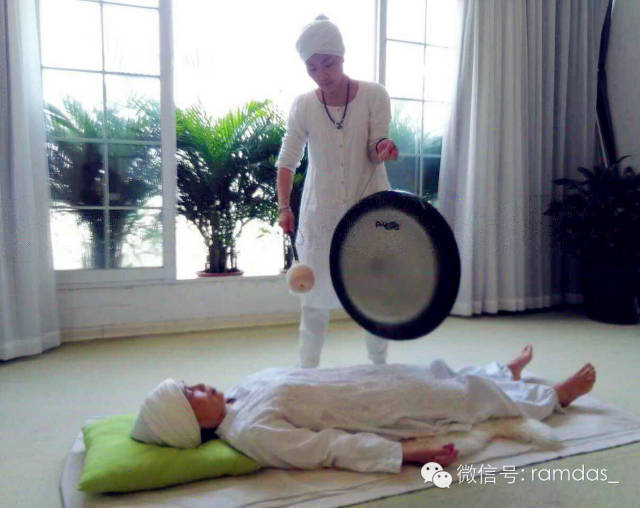 把你的身体和内心都交给这锣声,它会带你进入超越一切恐惧的境界,仿佛乘着声音的翅膀进入无限之中。如果你敲击或听见锣声11分钟或更长的话,在冥想后的半小时之内不要喝水。对喝水的限制是为了让交感神经系统和副交感神经系统产生内在的交互作用,不应该有其他事情分散他们的能量。