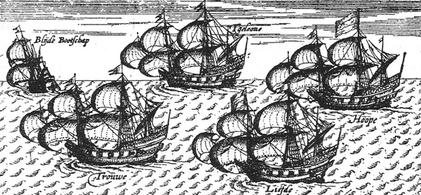 1598年,34岁的亚当斯和弟弟托马斯加入了荷兰鹿特丹公司(东印度公司的前身)前往远东的船队,进行香料贸易。船队由五艘船组成,于1598年6月24日从鹿特丹出发,先沿着西非海岸航行、经过麦哲伦海峡,再沿着智利海岸北上。