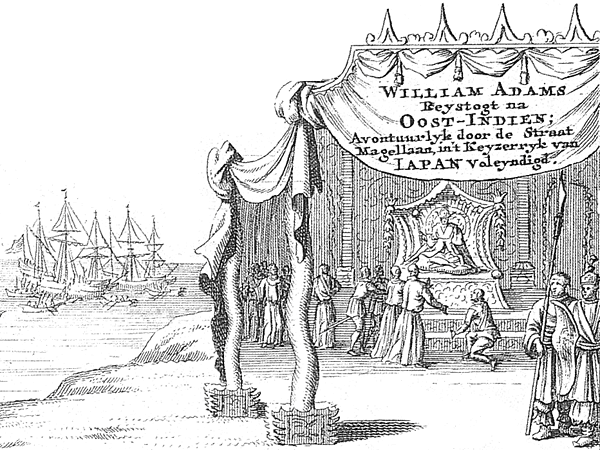 1600年4月29日,在经历了19个月的海上航行之后,亚当斯所在的船漂流到了日本,船员由上船时的110人减员到24人。此时船上的补给早已耗尽,每个人都是极度虚弱,能站立的只有6人。