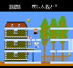 1986年的时候,南梦宫眼看《超级马力欧兄弟》大火,也想跟风一把。那个时候模仿超级玛丽的实在太多,每个公司都能挖出一堆这种“黑历史”。南梦宫交出来的就是《猫捉老鼠》的续作,《快乐鼠大陆》(Mappyland)。