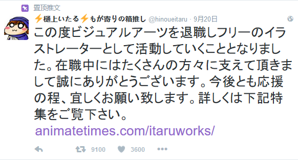 近日,樋上至宣布退社,转为自由画师。这个消息在GalGame爱好者小圈子内引发不小波澜。