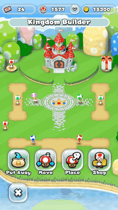 除此之外还有一个“王国建设”模式,玩家可以用在关卡中收集到的金币购买砖块、旗帜、水管等装饰物以及一些人物的特殊建筑,如路易的家、奇诺比奥的家等,之后就可以使用这些角色进行游戏了。