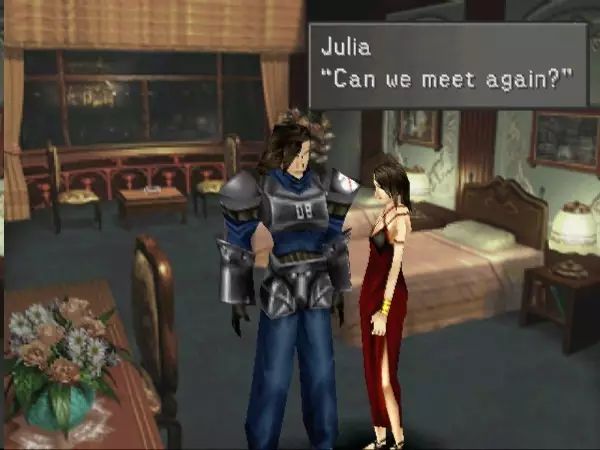 Laguna和Julia的爱情在第二天就随着Laguna奔赴战场而以遗憾告终,之后Laguna跌下悬崖后来到了大陆最南端的WinHill小镇,而Julia在苦等无望后也选择了嫁人,并写下了《Eyes On Me》的歌词。直到许多年之后,两人的后人也就是《最终幻想8》的男女主角Squall Leonhart(Laguna的儿子)和女主角Rinoa Heartilly(Julia的女儿)的浪漫相爱才弥补了他们当年的遗憾。