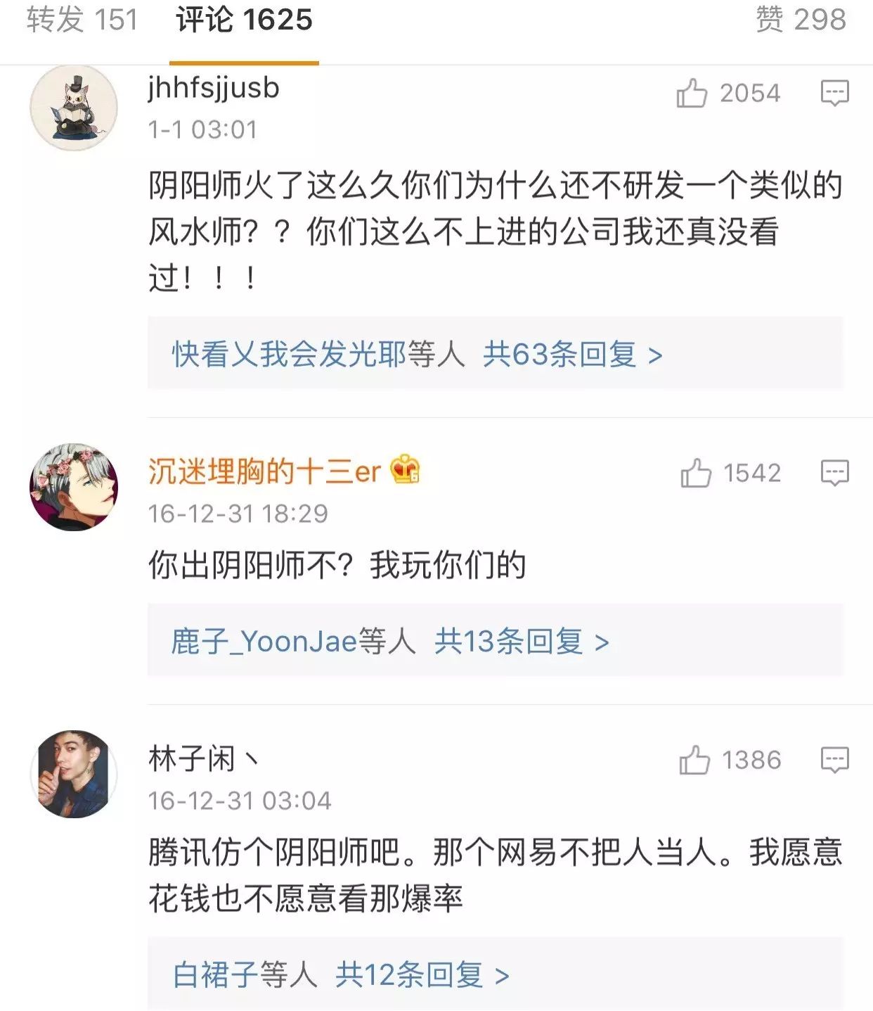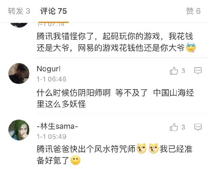 “网易《阴阳师》手游时至运来,微博被骂到6万多评论,玩家甚至向腾讯请山寨,真是羡煞旁人!”