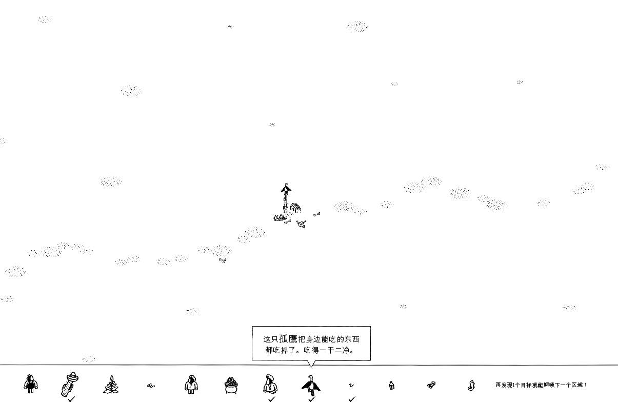 荒漠地图的“孤鹰”,提示为“把身边都吃掉了,吃得一干二净”,那么只要在沙漠中找到相对空白的场景,那就八九不离十了。
