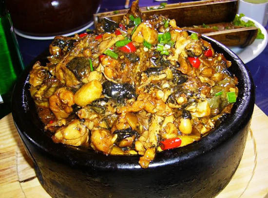 三杯石鸡是庐山传统地方菜肴,因烹制时不放汤水,以三杯调味品将鸡焖烂熟透,故名三杯石鸡。此菜酱红,原汁原味,浓香透鼻佐酒下饭皆宜。三杯石鸡富含蛋白质、脂肪、碳水化合物、无机盐、维生素等,有补养胃气、滋阴降火、利尿消肿之功效。阴虚火旺、浮肿者食用更佳。