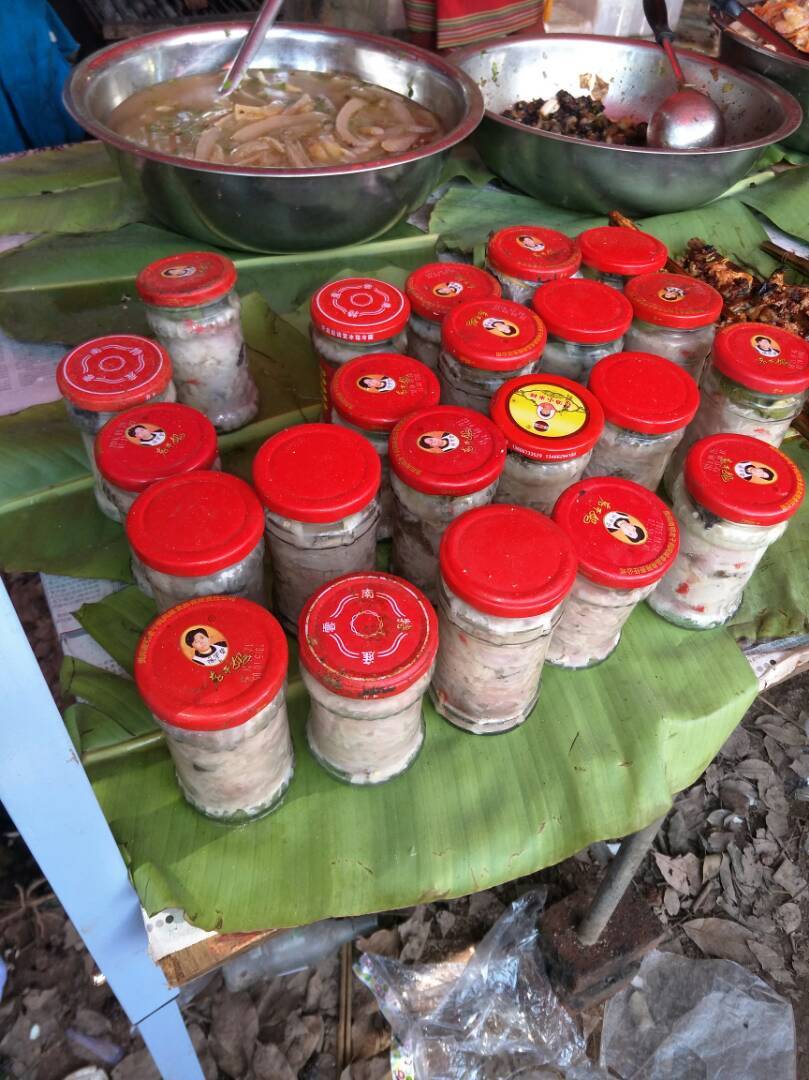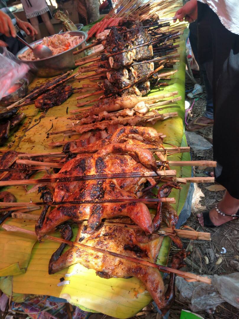 上图是在竹板上烤肉,下面放的炭火,一位傣族小哥不停的用铁夹子翻烤着,见我流着哈喇子,就免费送了我几块,傣族人真是热情好客,反正我是这么认为的。