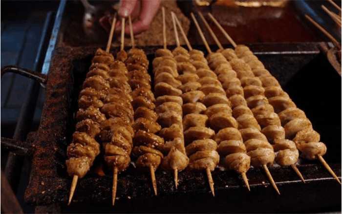 街头美食烤面筋,这位外国人竟然吃出了肉味
