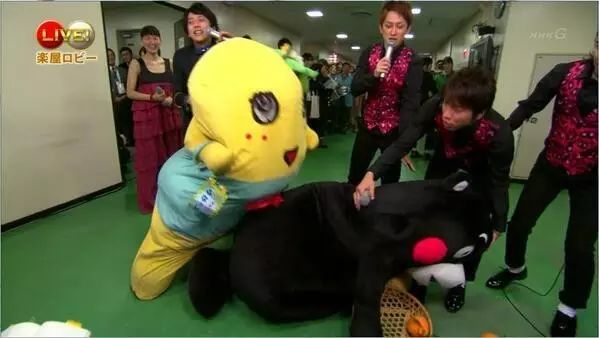 把熊本熊推倒的那只叫船梨精,他们分别代表熊本县和千叶县船桥市。