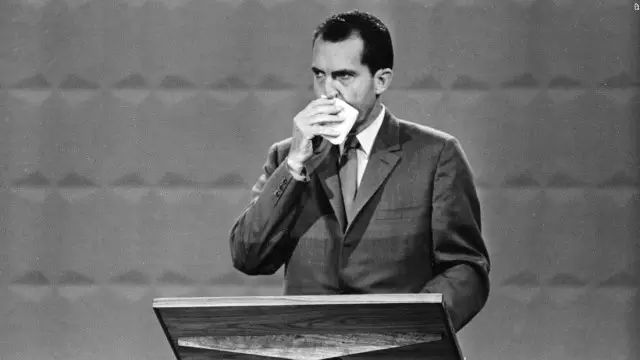 尼克松的确不好过。辩论前不久,他一侧膝盖刚做了手术,人瘦了将近20斤,西装肥了一圈,加上选战奔波,又得了伤风感冒。到了电视台,下车时,尼克松的伤腿还撞上了车门。