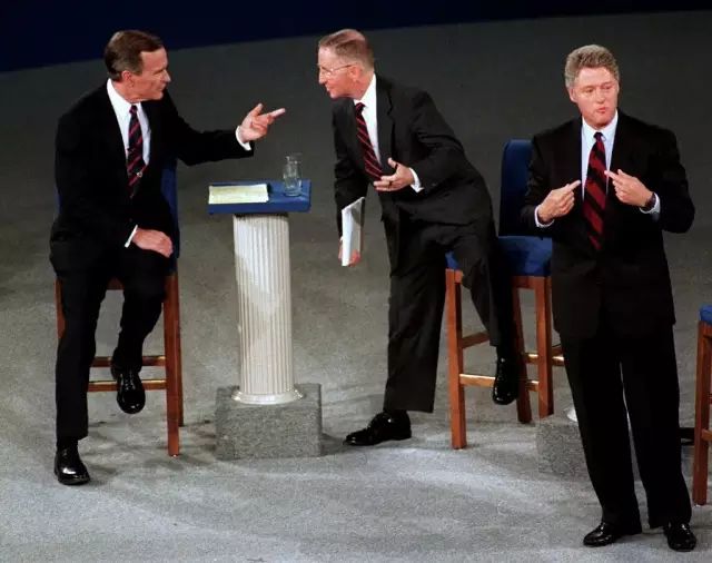 经典一幕发生在当年10月15日两人间第二场电视辩论,克林顿的表现甩出老布什以及当年第三位候选人佩罗……