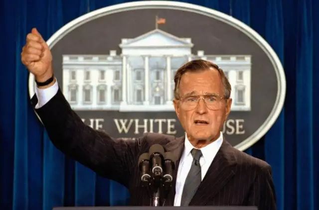 从参议员到外交官,随手撒出一把简历,老布什都底气十足,更别提他给美国史上颇受欢迎的里根总统干了八年副总统,继而在里根大力支持下问鼎白宫。一场海湾战争,更为其树立了最招美国人喜欢的“硬汉形象”。