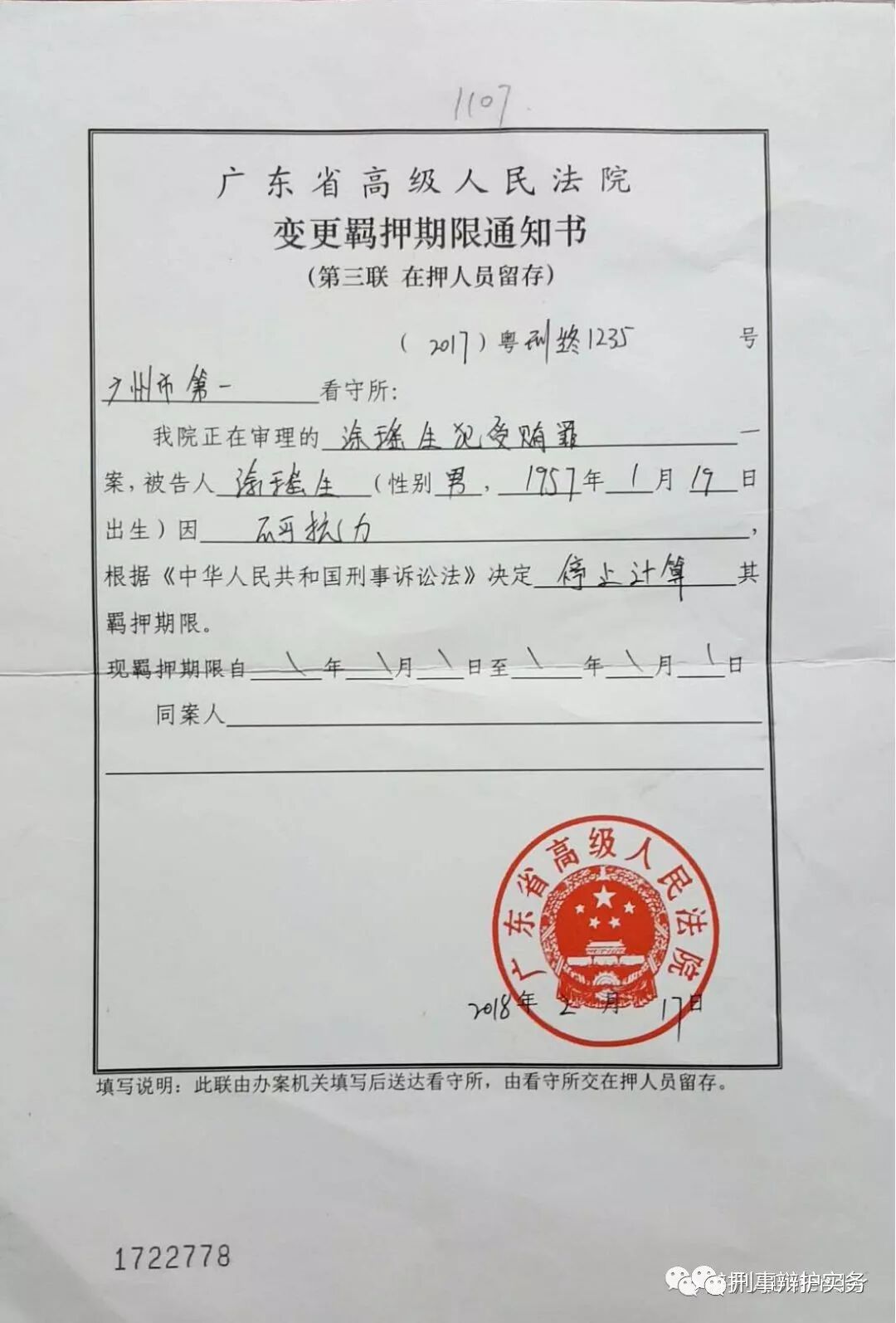 因而我情愿相信该通知书为虚假或者书记员填写《变更羁押期限通知书》时引用条款错误。