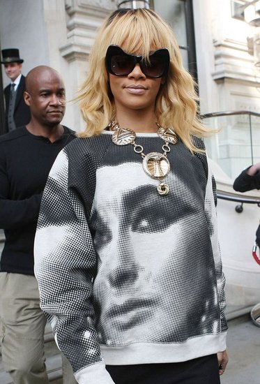 Rihanna 身穿Topshop 的衣服,上面印着的是好莱坞常青树 Elizabeth Taylor