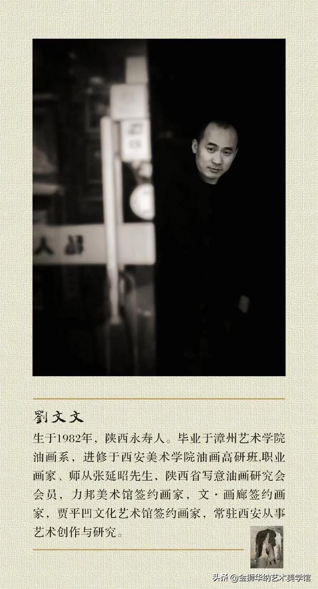 刘文文,生于1982年,陕西永寿人。毕业于漳州艺术学院油画系,进修于西安美术学院油画高研班,职业画家、师从张延昭先生,陕西省写意油画研究会会员,力邦美术馆签约画家,文·画廊签约画家,贾平凹文化艺术馆签约画家,常驻西安从事艺术创作与研究