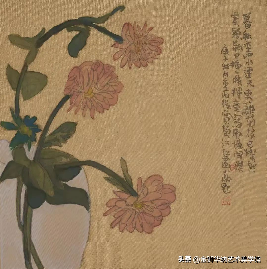 庚子秋月重阳节赏菊江红画