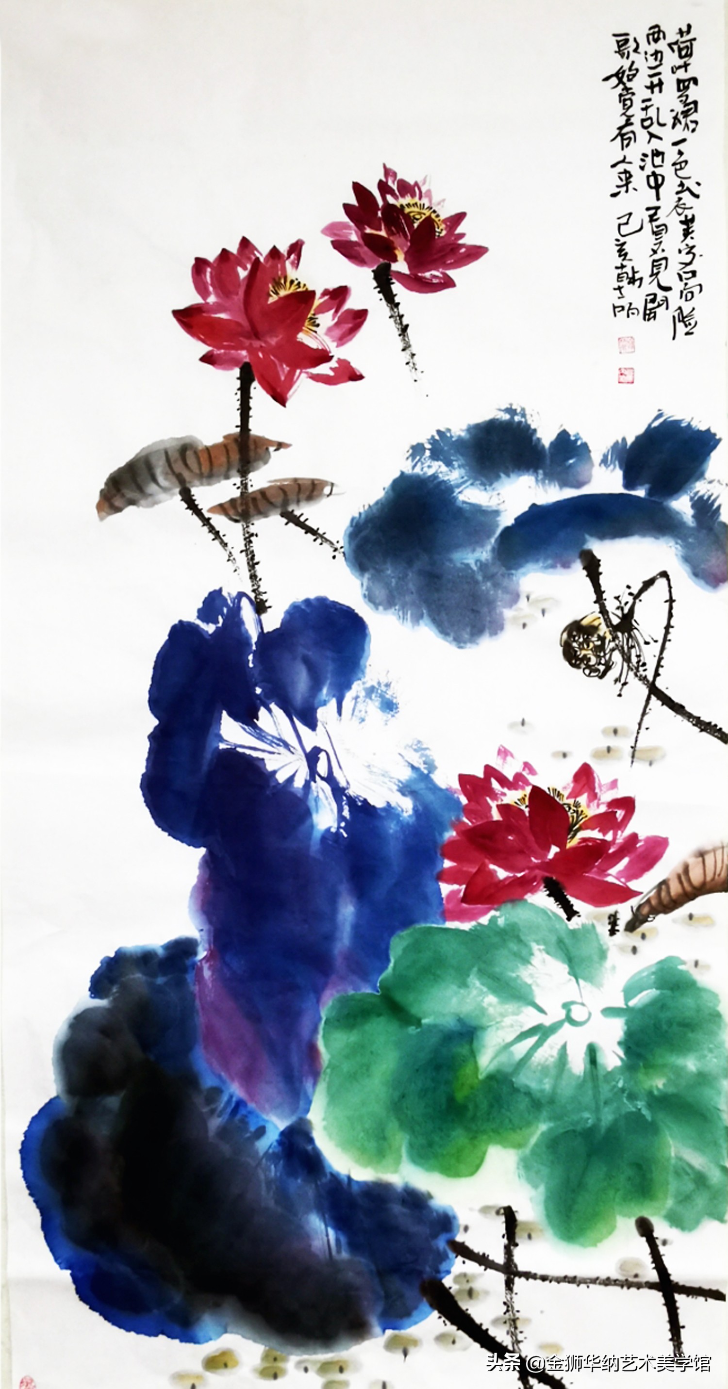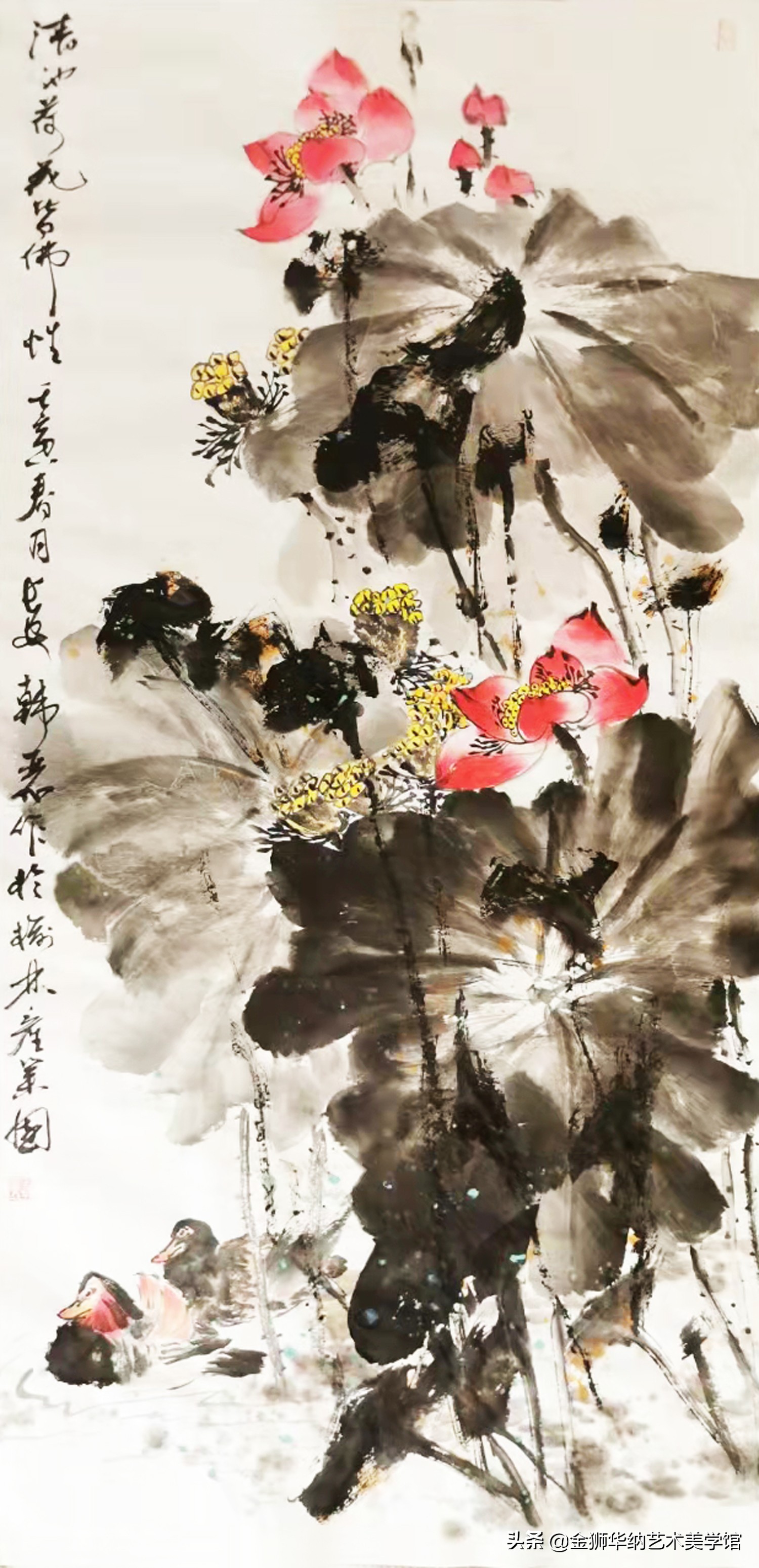 10月份《清荷图、荷塘盛事、清韵图》等多副作品献礼-第七届世界军人运动会-中华国礼入驻军运村并被收藏。