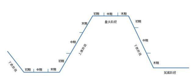 1、四个阶段包括:下跌阶段、筑底阶段、盘头阶段、下跌阶段,每个阶段又可分为初期、中期和末期。四个阶段循环反复,构成一轮又一轮的牛熊转换。