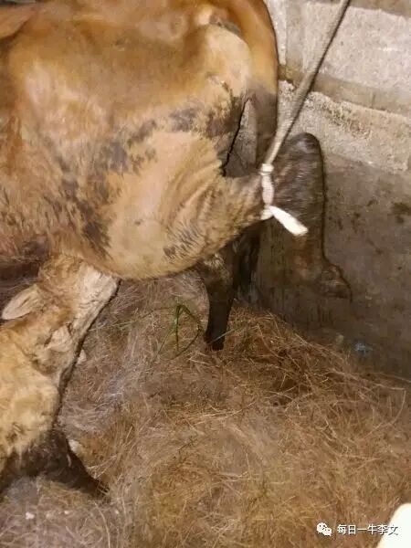 如果母牛不给牛犊喂奶,我在网上找了一个图片,最简单,最省事的办法就是下面这样。