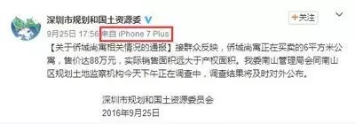 9月25日17:56分,深圳市规划和国土资源委员会官微@深圳市规划和国土资源委