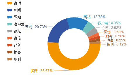 事件信息来源类型图中,微博占比56.67%,仍是信息来源主导,新闻和网站共占比36.51%,在信息端中发挥重要作用。