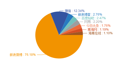 从媒体信息来源分析,与上周相比波动不大,新浪微博占比76.18%,微信占比12.34%,其余信息来源渠道距离两者差距明显,本地媒体海南在线和南海网发力有小幅上扬。