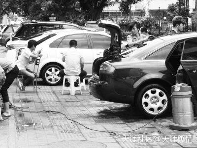 海口市南沙路金盘派出所路口处,一家名为龙华世朋汽车服务中心的工作人员经常占用人行道和盲道,侵占了公共资源。