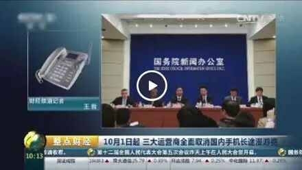 日前,三大电信运营商宣布将全面取消手机长途和漫游费,无疑是两会期间电信行业释放的一大惠民消息。3月5日,李克强总理在宣读政府工作报告中提出,年内全部取消手机国内长途和漫游费等的目标,让企业广泛受益、群众普遍受惠后。3月6日,在国务院政策吹风会上,三大运营商正式宣布,从今年10月1日起,将全面取消手机长途和漫游费。届时已经收取20多年的手机漫游费将成历史。