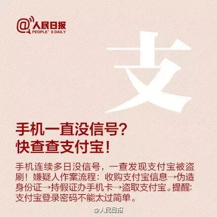 无论是网上还是现实的交易,一定要亲自打开支付宝或者网银,看钱是否真的到账。只要多留心,这种伎俩就无法得逞。